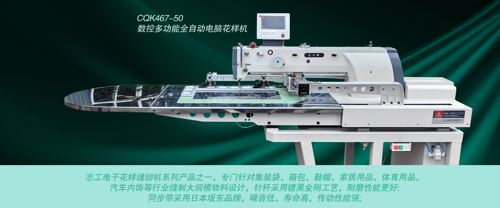 企業以特厚料縫制技術為核心,開發、制造“志工”牌各類縫制設備,產品涉及3大系列近50多個品種,產品暢銷50多個國家和地區。其沙發縫紉機、皮革縫紉機、集裝袋縫紉機、粗線縫紉機、電子花樣縫紉機、雙針縫紉機、特厚料電子花樣縫紉機、長臂厚料曲折縫紉機等機型全國銷量名列前茅。公司傳承精湛技藝,結合現代科技,我們的生產設備高效精準,每一道工序都凝聚著匠人的心血與智慧。